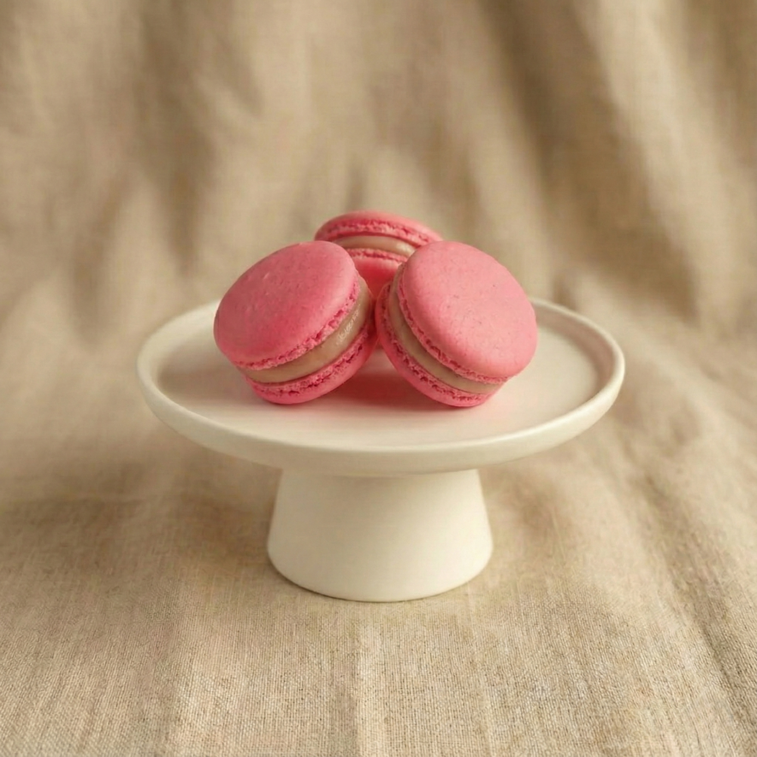 Tahle makronka je jako malá oslava – růžová, šťavnatá a lehce roztančená.
